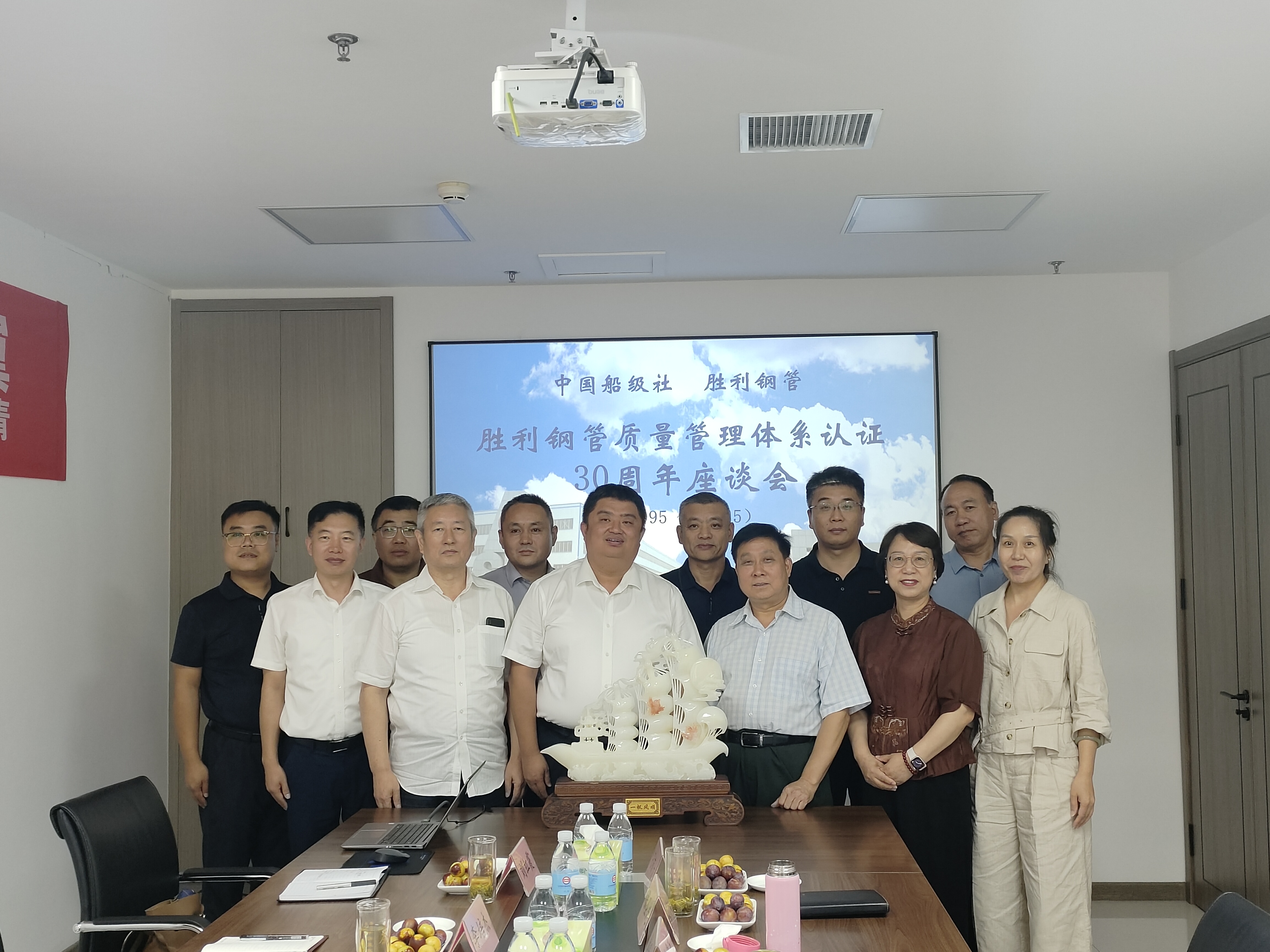 ? 2025 年 8 月 31 日,山東勝利鋼管有限公司(以下簡稱“山東勝利鋼管”)與中國船級社質(zhì)量認(rèn)證有限公司(以下簡稱 “中國船級社”)質(zhì)量管理體系認(rèn)證合作 30 周年座談會,在勝管集團會議室隆重舉行。本次座談會以 “質(zhì)為本 責(zé)為魂 效為翼,三十年認(rèn)證賦能企業(yè)長青” 為核心主題, 共憶合作歷程,共話未來發(fā)展。